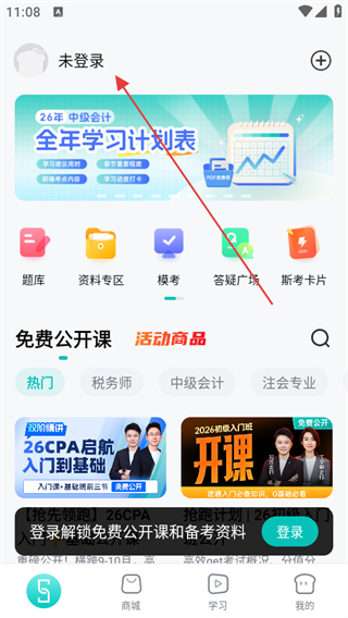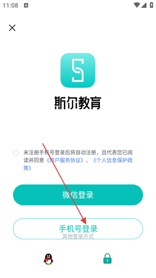 1、打開斯爾教育APP,在首頁點擊登錄按鈕,進入登錄頁面。