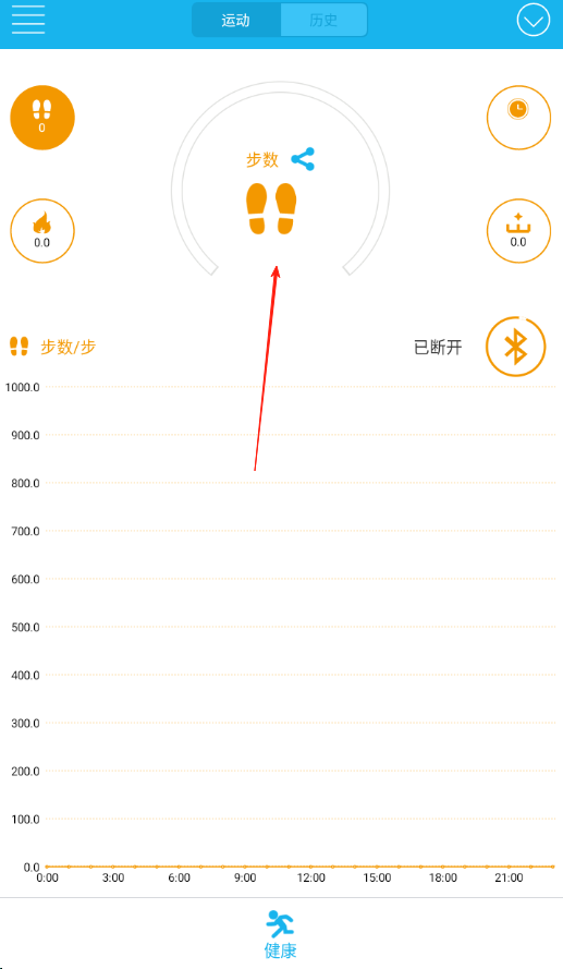 1、進(jìn)入運(yùn)動(dòng)頁(yè)面,查看步數(shù)數(shù)據(jù),界面呈現(xiàn)步數(shù)圓環(huán)、趨勢(shì)圖表,可了解每日步數(shù)變化,借助藍(lán)牙連接設(shè)備,同步運(yùn)動(dòng)信息,輔助掌握運(yùn)動(dòng)進(jìn)度。