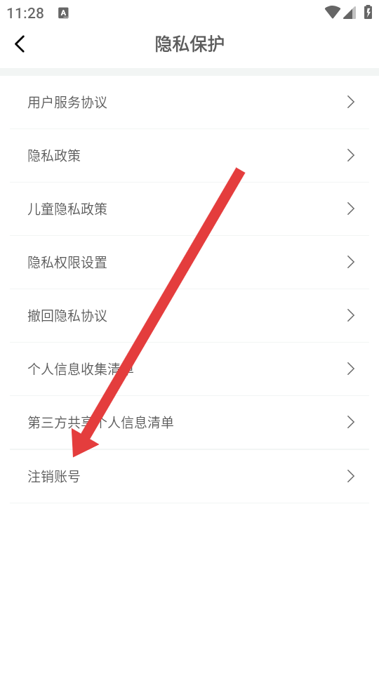 2、在隱私保護(hù)的頁(yè)面,點(diǎn)擊注銷賬號(hào)按鈕,進(jìn)入注銷賬號(hào)流程。