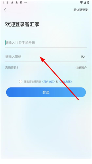 3、在密碼登錄界面,在輸入框內(nèi)填寫賬號和密碼,勾選協(xié)議后,點擊登錄按鈕,即可完成密碼登錄操作。