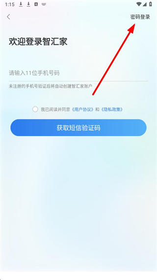 2、在登錄頁面右上角,點擊密碼登錄選項,切換至密碼登錄的操作界面。