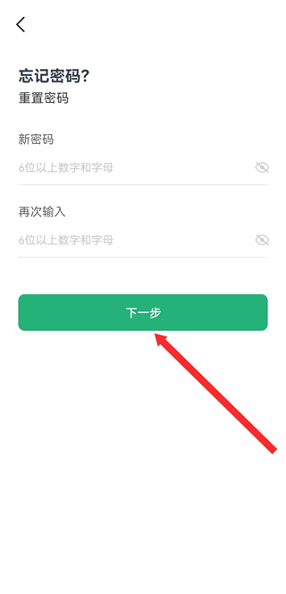 3、設(shè)置新密碼并再次輸入,點(diǎn)擊下一步,完成密碼找回操作。
