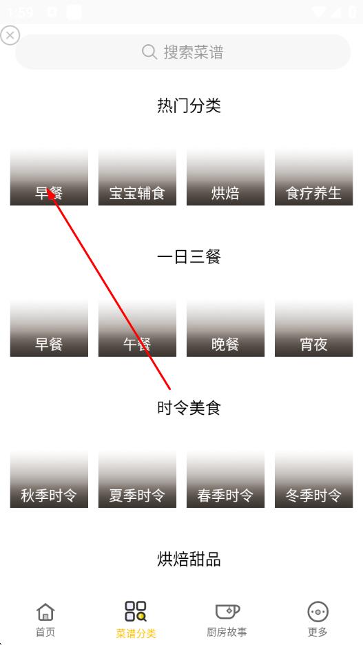 2、在熱門分類里選擇想要查看的菜譜類別,比如點(diǎn)擊早餐。