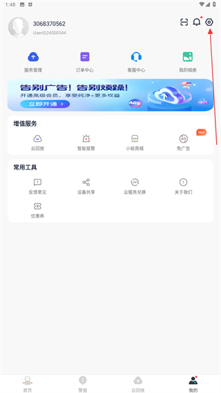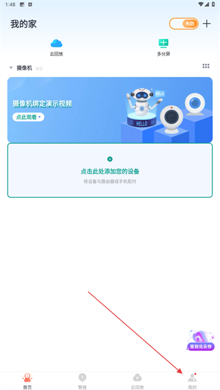 1、啟動小蟻智能攝像機APP,進入時點擊導(dǎo)航欄中我的。