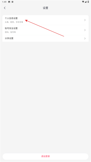 3、在設(shè)置的界面內(nèi),點擊個人信息設(shè)置的按鈕。