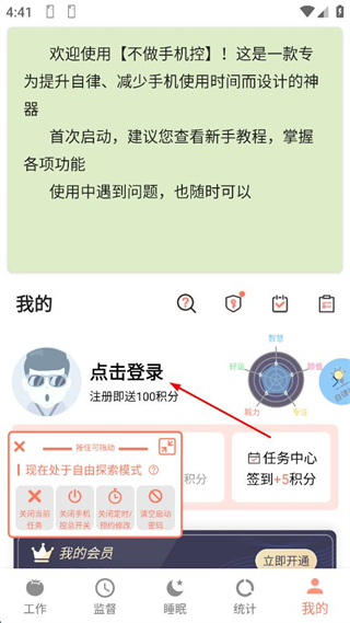 不做手機(jī)控app應(yīng)用有三種模式:番茄模式、監(jiān)督模式和睡眠模式。