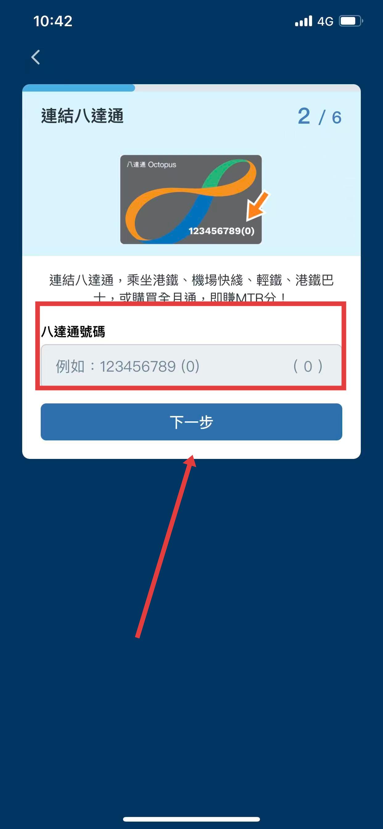 4、進(jìn)入連結(jié)八達(dá)通頁面,如已有八達(dá)通,輸入八達(dá)通號(hào)碼,點(diǎn)擊下一步,若無也可直接點(diǎn)擊下一步跳過此步驟。