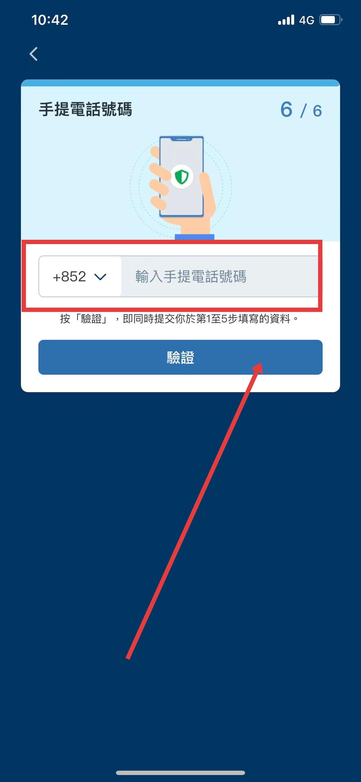 8、在手提電話號(hào)碼頁面,選擇區(qū)號(hào)并輸入手提電話號(hào)碼,點(diǎn)擊驗(yàn)證,按照后續(xù)提示完成注冊(cè)驗(yàn)證流程。