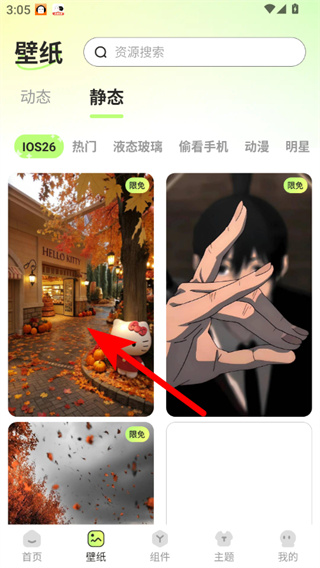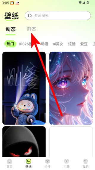 2、在壁紙頁(yè)面,點(diǎn)擊靜態(tài)選項(xiàng),進(jìn)入靜態(tài)壁紙選擇界面。