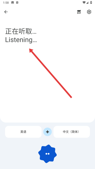 3、在進(jìn)入到語音翻譯頁面時(shí),可以點(diǎn)擊下方麥克風(fēng)按鈕開始輸入語音。
