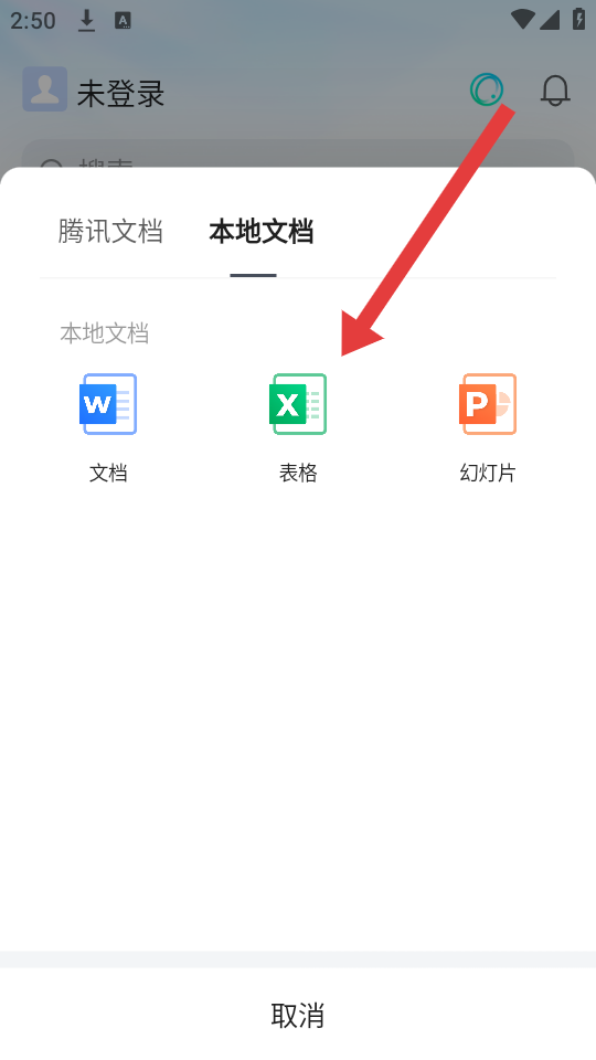 2、在彈出的菜單中,需要選擇表格的選項,點擊綠色Excel的圖標,進入新建的表格編輯頁面。