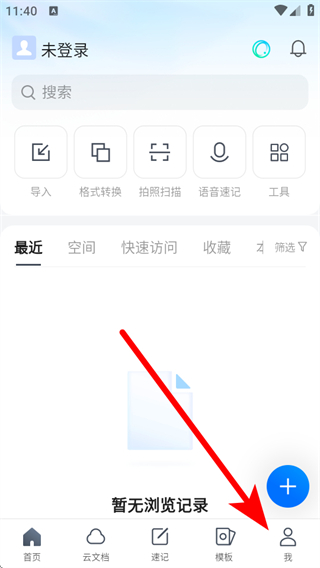 1、打開騰訊文檔APP,需要點擊右下角我,進入個人的頁面。