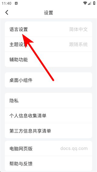 3、在設置的頁面,點擊語言設置的選項,進入語言設置頁面。