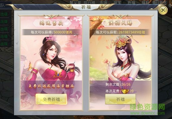 祈福能獲得銀兩和經(jīng)驗(yàn),每天都能免費(fèi)祈福一次銀兩。游戲前期玩家可以適當(dāng)?shù)挠迷獙毱碓附?jīng)驗(yàn),能加快升級進(jìn)度,早日榜上有名。