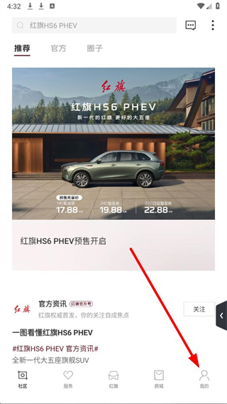 1、在紅旗智聯(lián)界面底部,找到我的選項(xiàng),點(diǎn)擊進(jìn)入我的頁面。