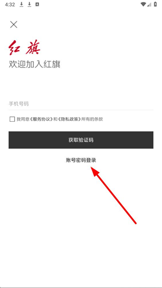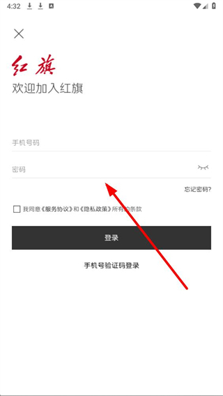 4、在密碼登錄界面中,輸入手機(jī)號碼與對應(yīng)密碼,勾選協(xié)議條款后點(diǎn)擊登錄按鈕,即可完成密碼登錄操作。