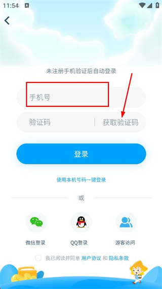 3、進入登錄頁面后,輸入手機號,點擊獲取驗證碼。