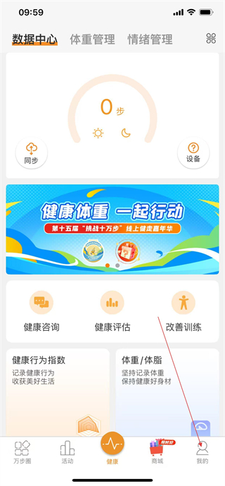 1、打開萬步健康A(chǔ)PP,點(diǎn)擊導(dǎo)航欄我的選項(xiàng)。