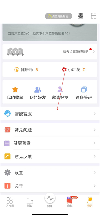 2、在我的頁面,點(diǎn)擊智能客服選項(xiàng)。