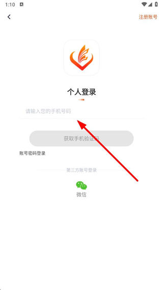 4、在驗(yàn)證碼登錄頁面,輸入對(duì)應(yīng)的手機(jī)號(hào)碼,點(diǎn)擊獲取驗(yàn)證碼,填寫收到的短信驗(yàn)證碼后完成登錄操作。