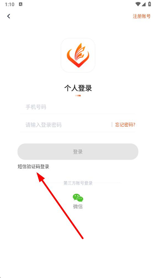 3、在登錄頁面里,選擇短信驗(yàn)證碼登錄選項(xiàng),切換至驗(yàn)證碼登錄的信息填寫界面。