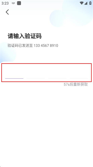 4、進入驗證碼輸入界面,填寫手機收到的對應字符,完成注冊流程的驗證步驟。
