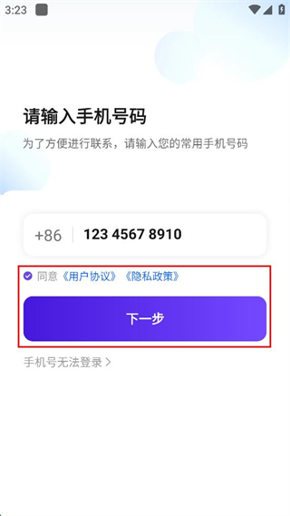 2、勾選“同意用戶協(xié)議和隱私政策”選項,確認后點擊“下一步”按鈕推進流程。