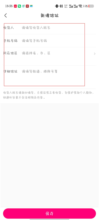 4、在新增地址頁面輸入詳細信息后點擊保存。