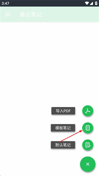 2、在創(chuàng)建選項(xiàng)菜單中點(diǎn)擊模板筆記選項(xiàng),進(jìn)入新筆記的模板選擇頁面。