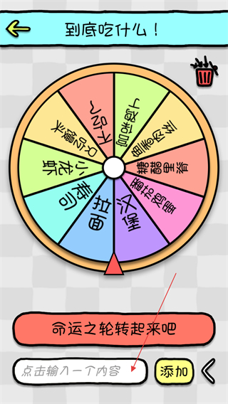 使用方法很簡(jiǎn)單,創(chuàng)建幾個(gè)屬于自己的選擇器(目前最多6個(gè)),在轉(zhuǎn)盤上添加你希望的內(nèi)容(目前最多36個(gè)),點(diǎn)擊按鈕轉(zhuǎn)盤旋轉(zhuǎn),當(dāng)轉(zhuǎn)盤停止時(shí)指針會(huì)為你指引最終的選擇!隨時(shí)隨地幫你解決各種選擇困難癥!