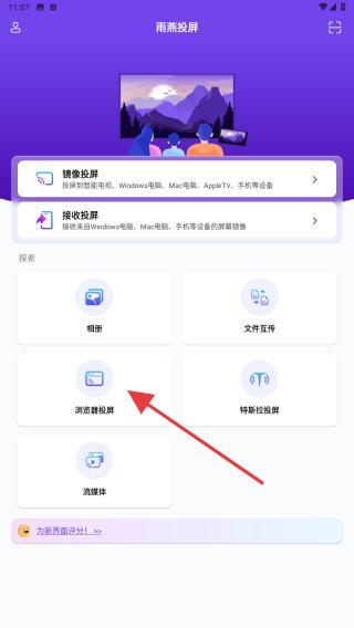 2、進(jìn)入到首頁(yè)內(nèi),點(diǎn)擊瀏覽器投屏的功能按鈕。