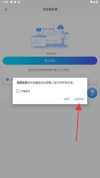 3、投屏前,會(huì)彈出溫馨提示,點(diǎn)擊立即開(kāi)始。