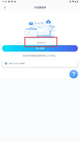 4、開(kāi)始后,頁(yè)面會(huì)顯示正在投屏的計(jì)時(shí)信息。