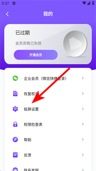 2、在我的頁(yè)面中,點(diǎn)擊投屏設(shè)置,進(jìn)入投屏設(shè)置的頁(yè)面。