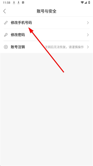 4、在賬號與安全頁面,點擊修改手機號碼選項,按照提示完成身份驗證后,即可更換綁定的手機號。