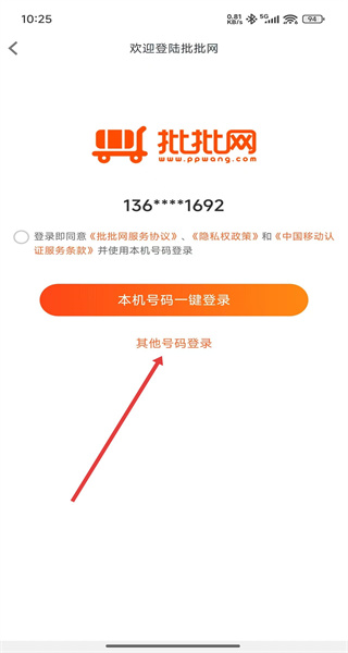 3、在跳轉到登錄頁面中,可以點擊其他號碼登錄按鈕,使用其他手機號進行登錄。