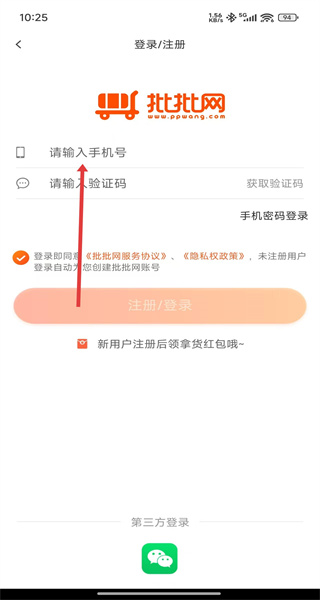 4、可以點擊輸入框填寫手機號,以便獲取驗證碼填寫后完成登錄操作。