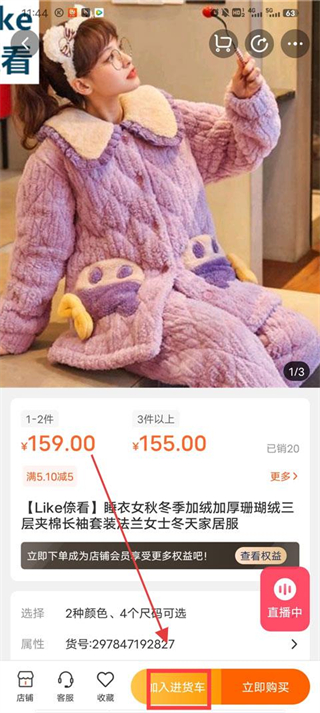 1、打開批批網(wǎng)APP,進入衣服商品詳情頁后,點擊加入進貨車。