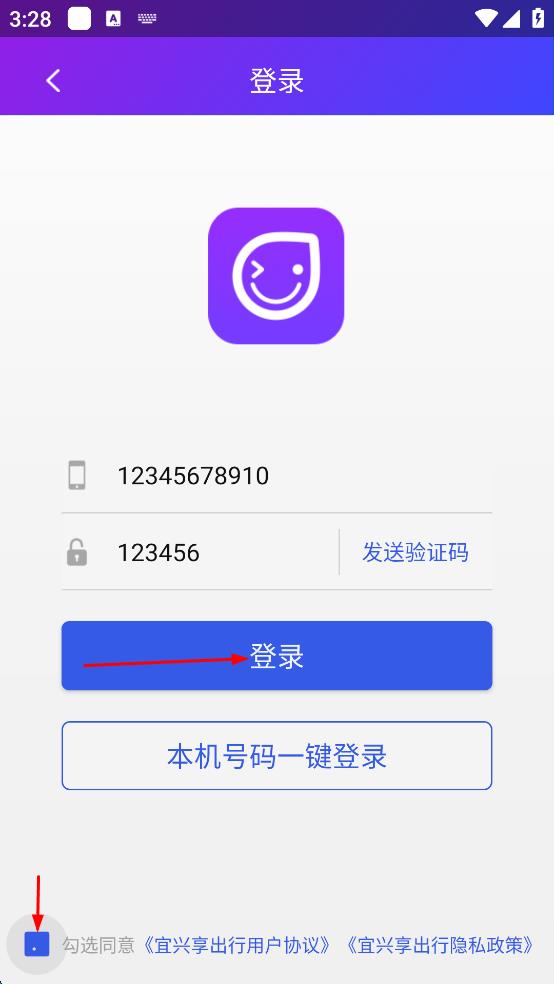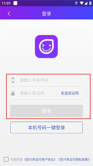 3、在登錄界面輸入手機號碼和驗證碼,勾選同意相關協(xié)議后準備登錄。