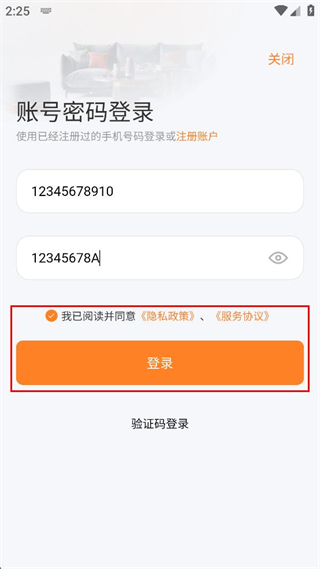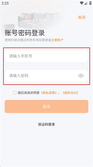 3、在賬號(hào)密碼登錄頁面,輸入手機(jī)號(hào)和密碼。