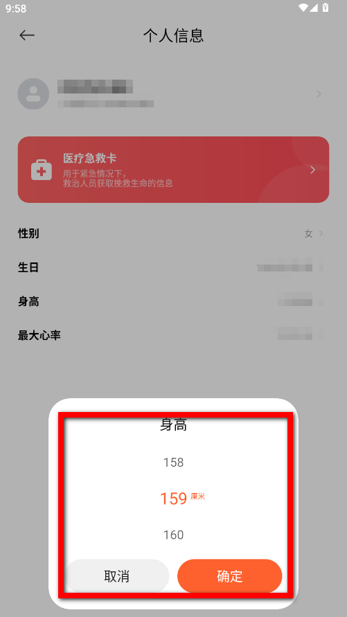 4、在彈出的身高設置框中,選擇或輸入想要設置的身高數(shù)值,點擊確定即可完成設置。
