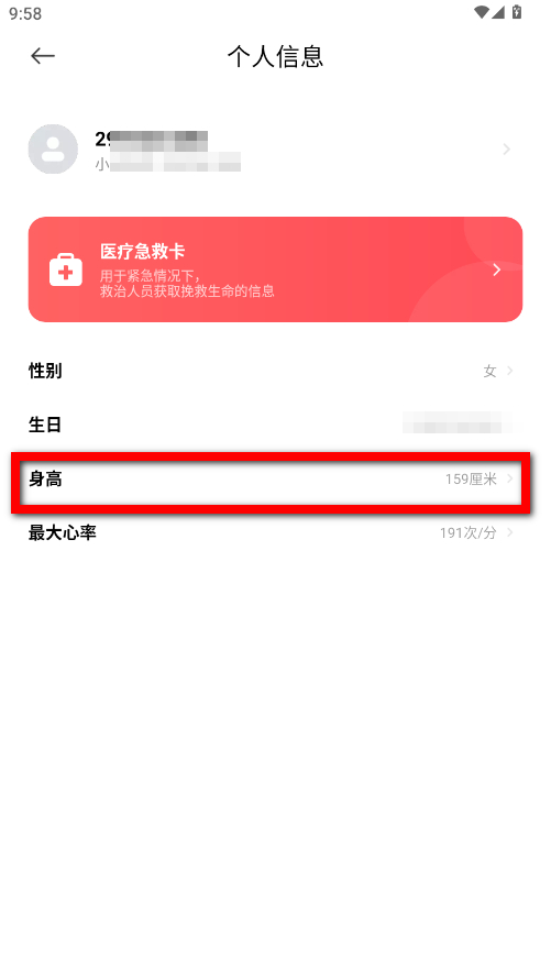 3、在個人信息界面,找到身高選項并點擊。