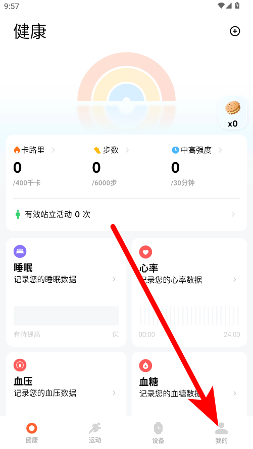 1、在小米運動健康首頁,點擊下方我的選項,進入個人頁面。