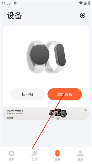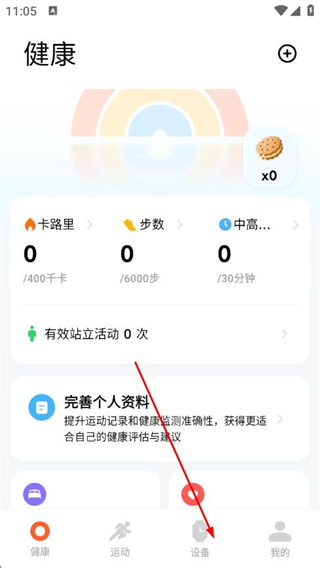 1、打開小米運動健康APP,點擊導航欄設備。