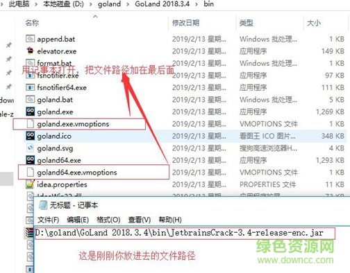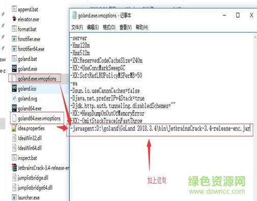 8.然找到圖片中bin文件目錄,用筆記本打開goland.exe.vmoptions和goland64.exe.vmoptions兩個文件