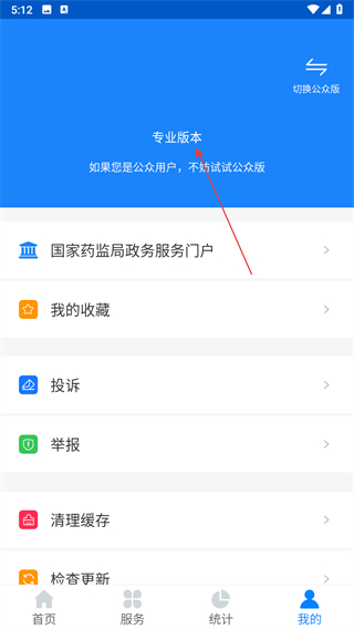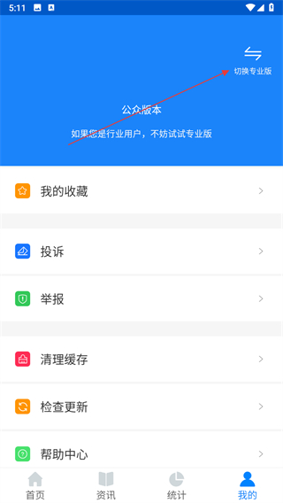 2、點(diǎn)擊我的頁(yè)面右上角的切換專(zhuān)業(yè)版按鈕。