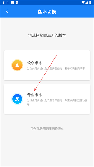 3、在版本切換頁(yè)面,點(diǎn)擊專(zhuān)業(yè)版本選項(xiàng)。