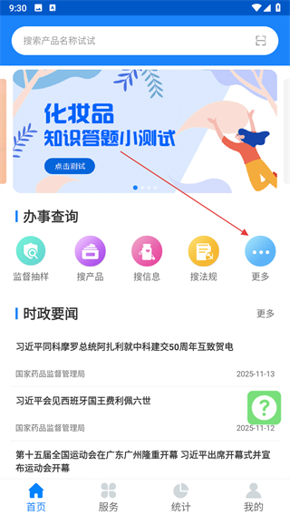 1、打開(kāi)化妝品查詢(xún)類(lèi)應(yīng)用,點(diǎn)擊更多,進(jìn)入服務(wù)頁(yè)面。