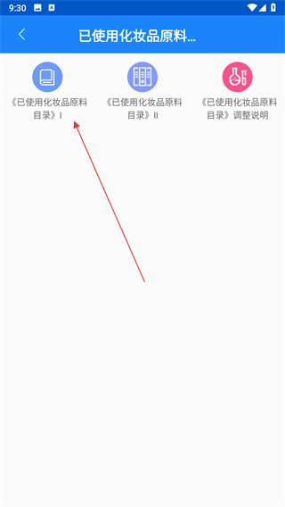 3、在已使用化妝品原料目錄頁(yè)面,選擇目錄進(jìn)入。