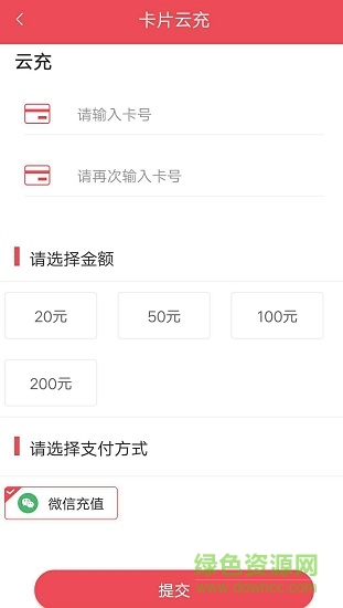 1、打開App,選擇"卡片云充",輸入卡號(hào)(只能充值CPU卡),選擇需要充值的金額和支付方式,完成充值操作。